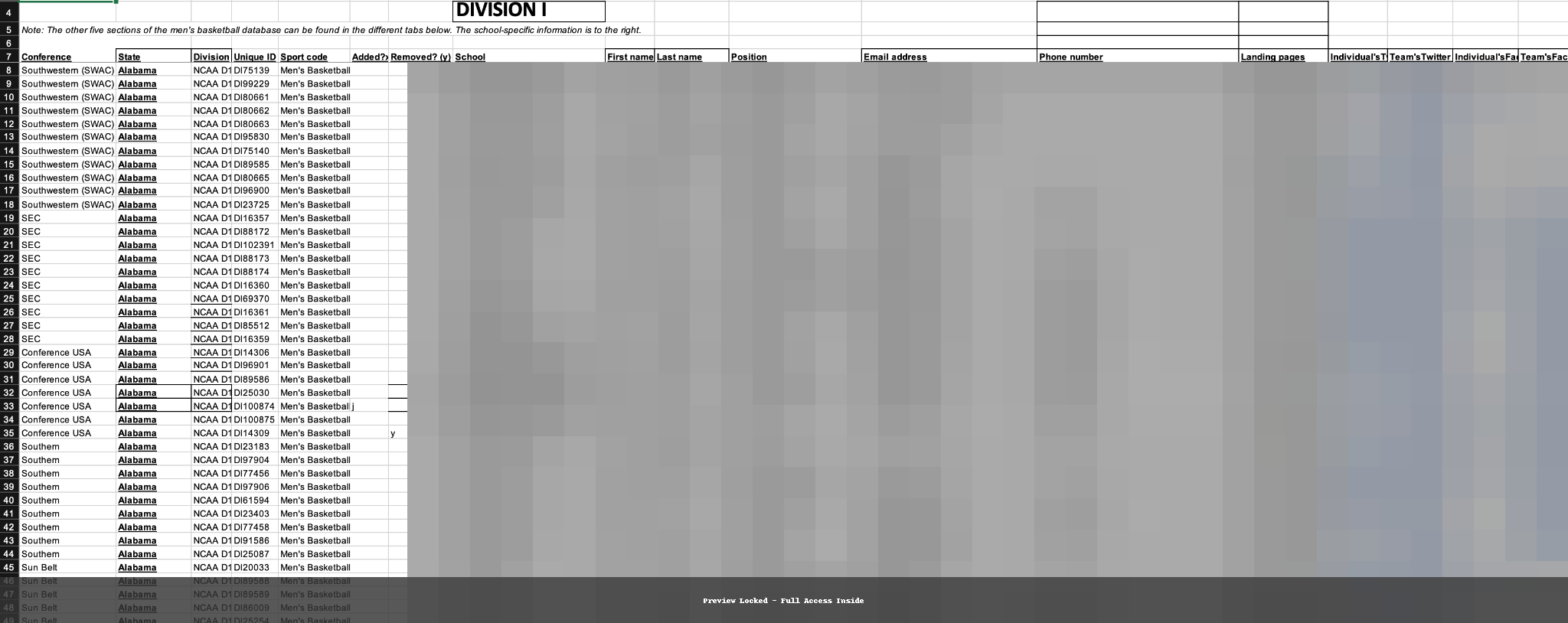 You’ll get direct contacts for NCAA Division I, II, III, NAIA, and Junior Colleges. Every level of the game.
